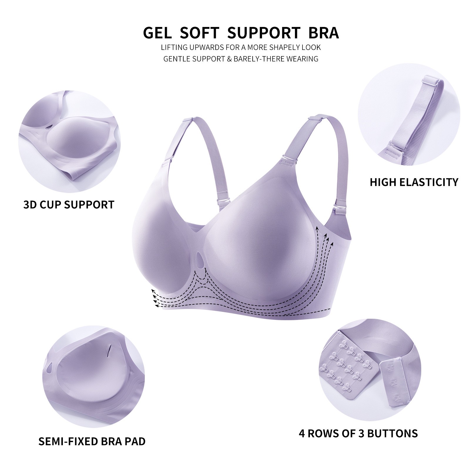 Color: Black, Nude, White, Pink, Gray, Purple, Champagne